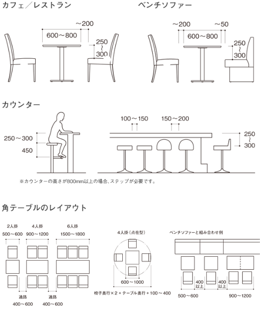 店舗のテーブル 椅子の寸法と選び方 繁盛する店舗デザイン 開業豆知識