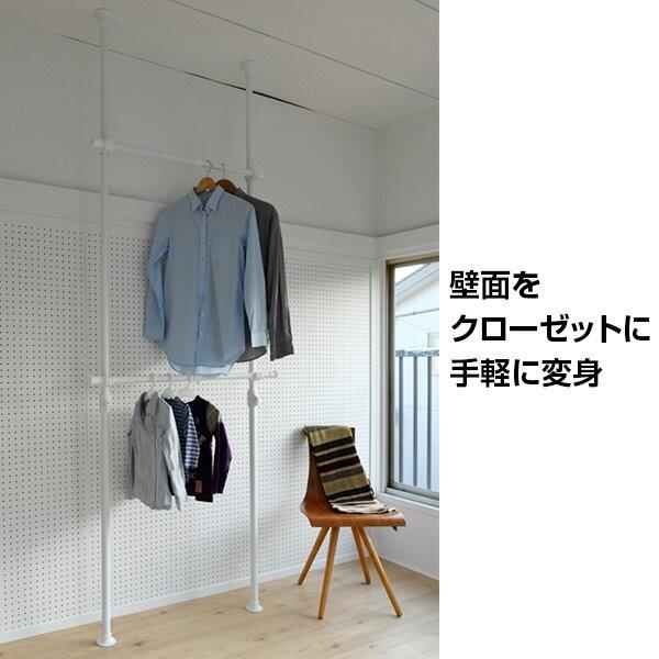 楽天市場 天井突っ張り式 ハンガーラック 2段 幅伸縮式 最大幅166cm