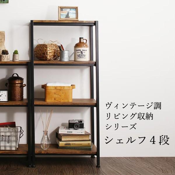 楽天市場 オープンシェルフ おしゃれ ヴィンテージ風 幅90cm 4段