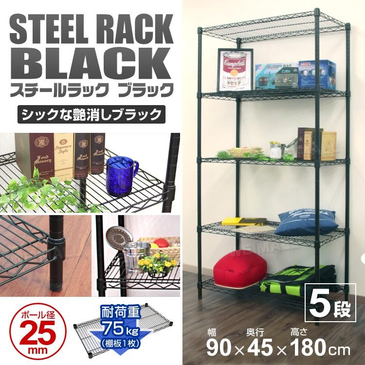 スチールラック メタル 製 ラック 幅90 5段 マットブラック シェルフ