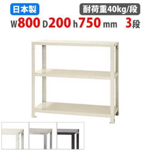 スチールラック 幅80 奥行20 高さ75cm 3段 40kg 段 スリムラック 軽量