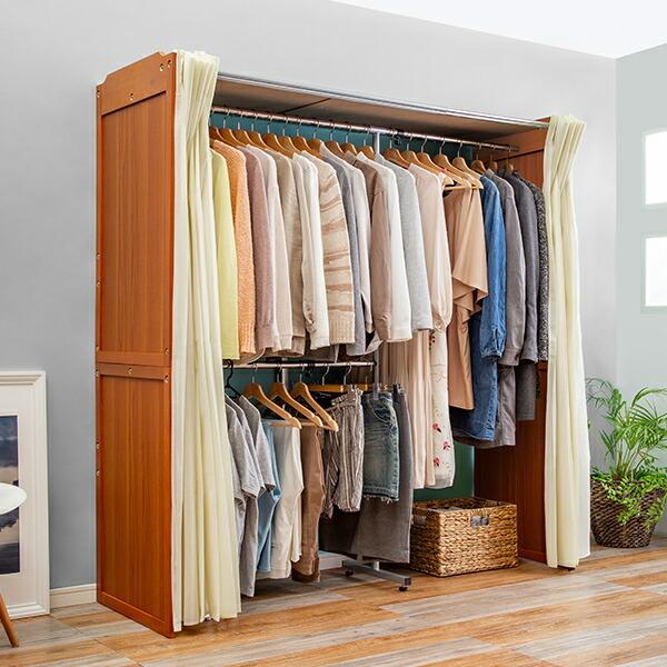 横伸縮 ハンガーラック カバー付き 2段 ワードローブ クローゼット