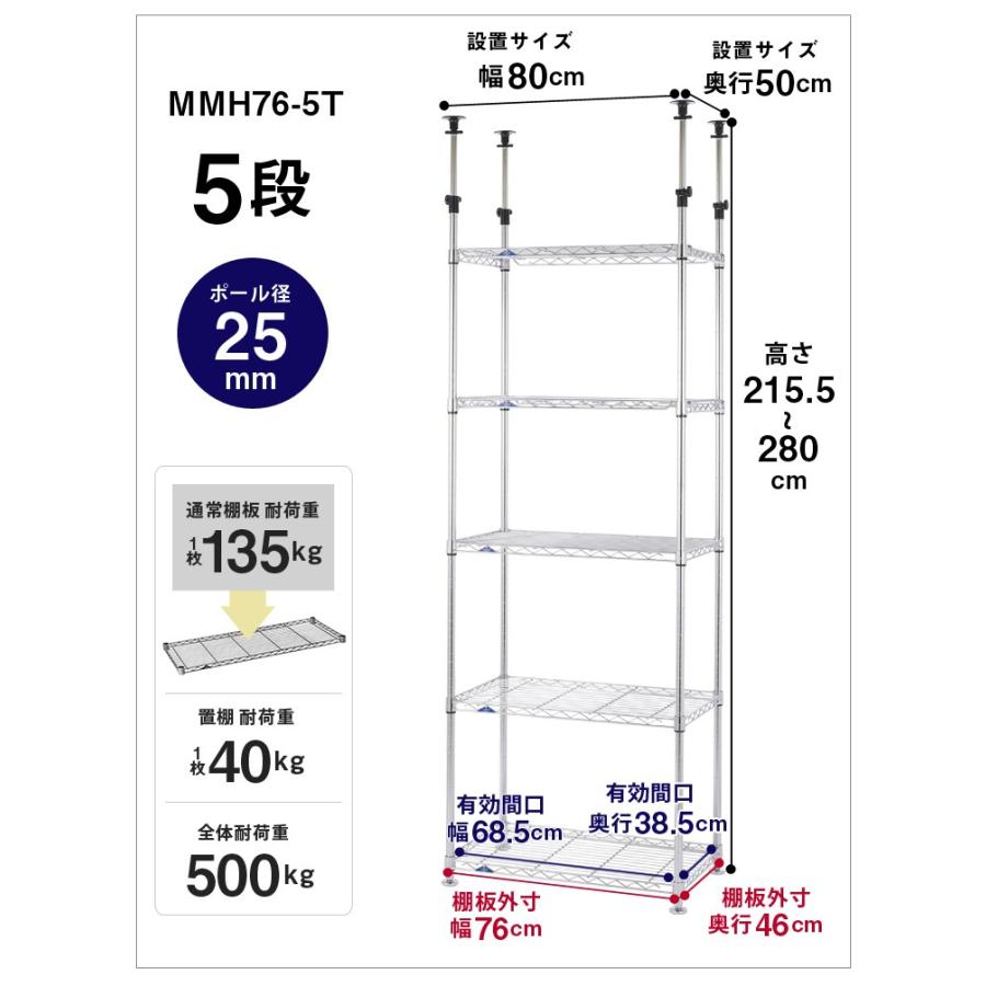 ルミナス正規販売店 突っ張りラックつっぱりラック 幅80 奥行50 5段
