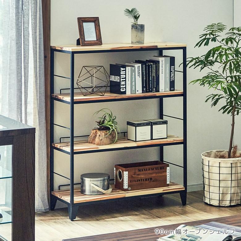 楽天市場 オープンシェルフ おしゃれ ヴィンテージ風 幅90cm 4段 オープンラック オープン棚 収納ラック アイアンシェルフ アイアンラック 天然木 男前インテリア