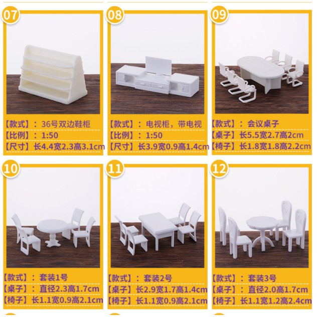 Diy景觀模型家具材料剖面戶型家具模型桌椅套裝展柜白色1 50建築沙盤