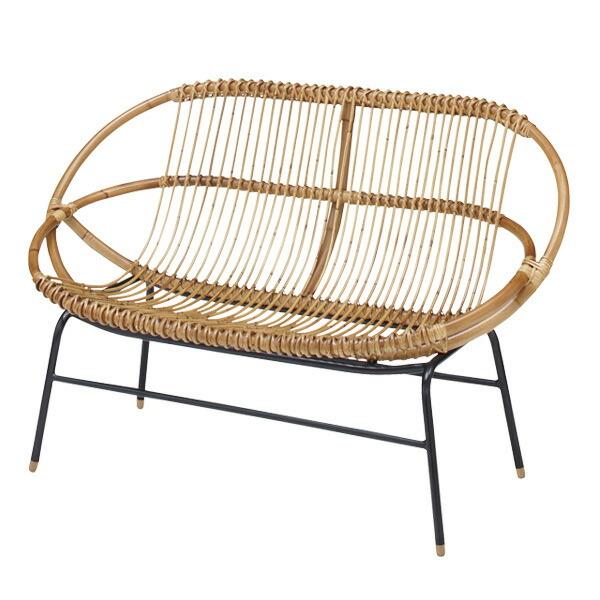 ラタンチェア 2人掛け ラブチェア アイアンフレーム 籐家具 幅119cm