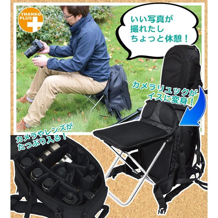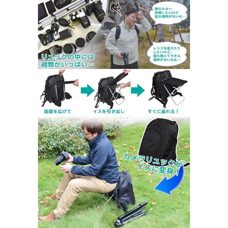 カメラリュック 折り畳み椅子付き どこでも座れるカメラリュック