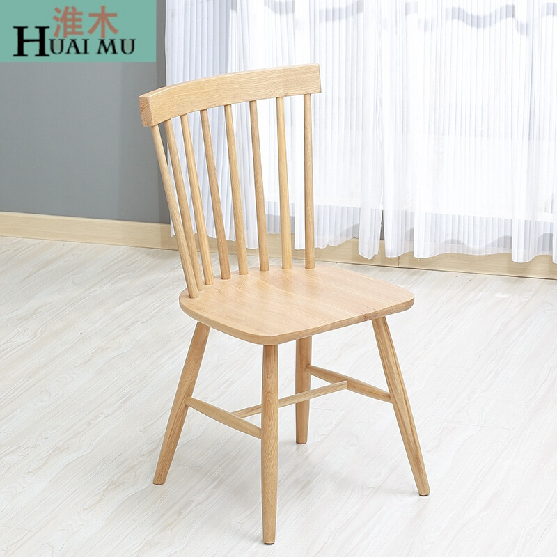 淮木椅子 凳子淮木白橡凳子休闲创意椅餐椅北欧原木实木靠背吃饭椅子