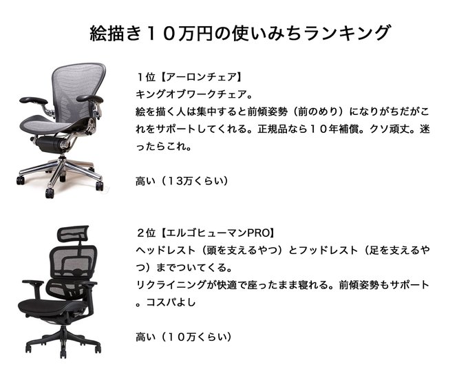 クリエイターさんにオススメの椅子と その買い方など Togetter