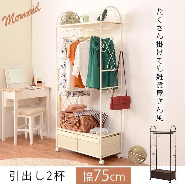 ハンガーラック おしゃれ 白 茶 棚付きハンガーラック 収納 ラック