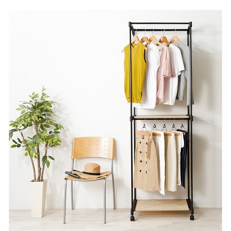 楽天市場 ハンガーラック 2段 おしゃれ 棚付き 幅66 Ash T ダブル